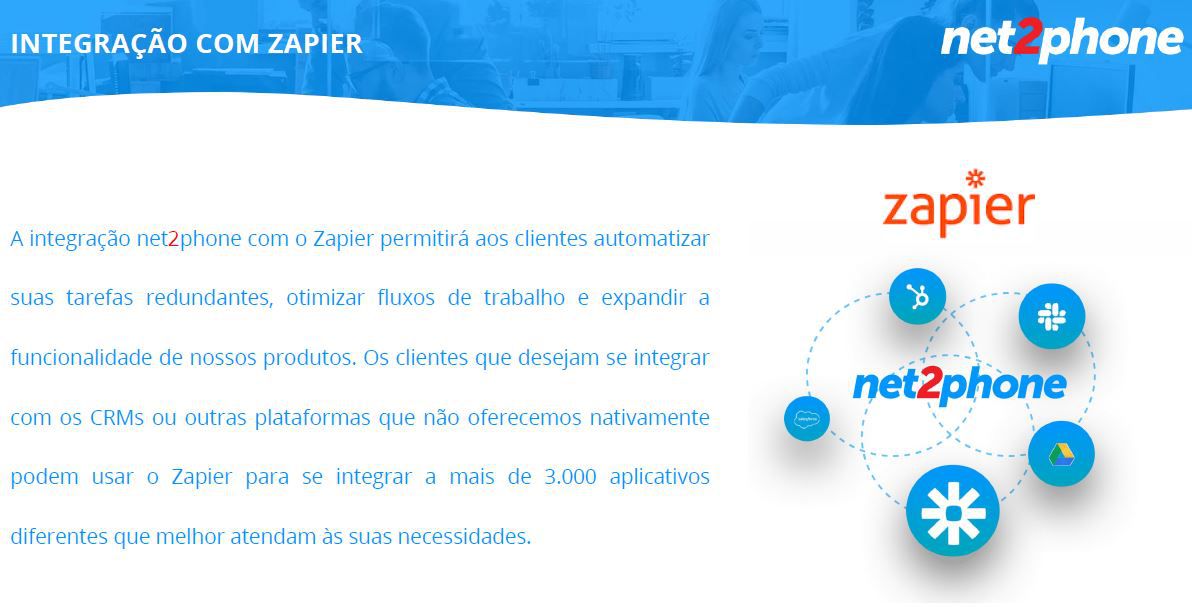 Se VC usa o Zapier, Saiba que o Net2phone Pabx Cloud Pode Ser Integrado com o Zapier, Aumentando Assim a Produtividade e Integrando toda a parte de Voz com o Zapier, Clique no Botão WhatsApp ou no Consulte o Preço Que Nosso Especialista de Imediato lhe Mostrará como Fazer Isto Através desta Solução.